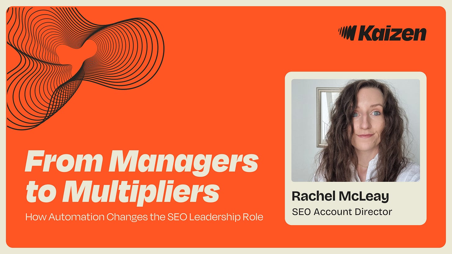 As automation reshapes execution, the value of our SEO leadership is shifting away from individual output and more towards building teams that can do better work, adapt faster, and grow into leaders themselves - even when we’re not in the room.