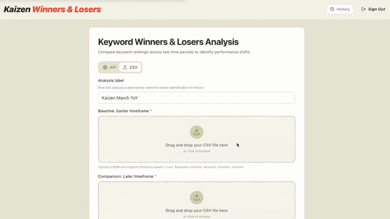 We decided to treat ad hoc keyword impact analysis as a systems problem rather than an operational inconvenience. Our goal was to remove the repeated mechanical steps that added friction to this reactive moment, without compromising our analytical standards.