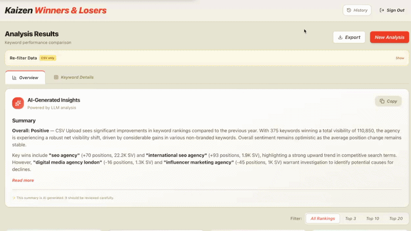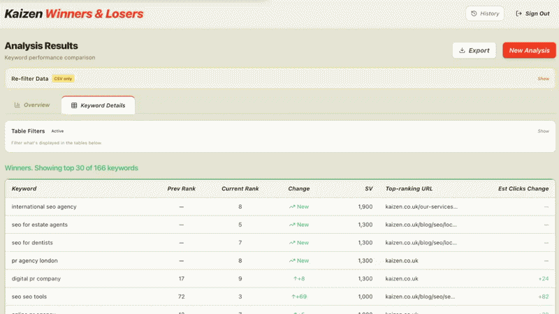 Define comparison logic early to save you a lot of back and forth later on, so work out how you’ll group rankings, estimate impact, and what actually counts as meaningful movement - this saves a lot of back and forth on data integrity and visualisations later down the line.